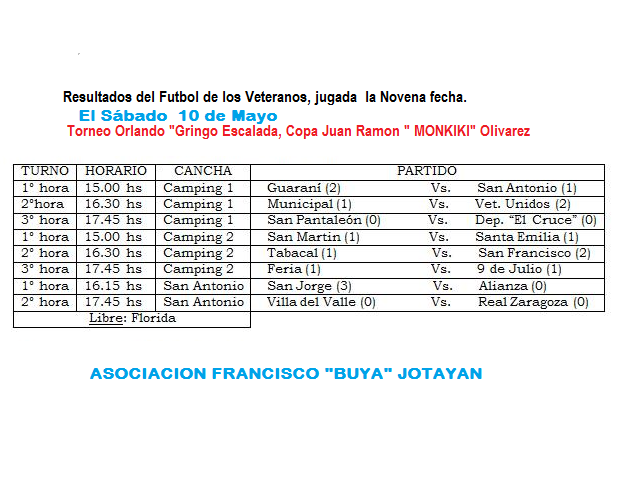- RESULTADOS DEL FÚTBOL DE VETERANOS EN H.YRIGOYEN.