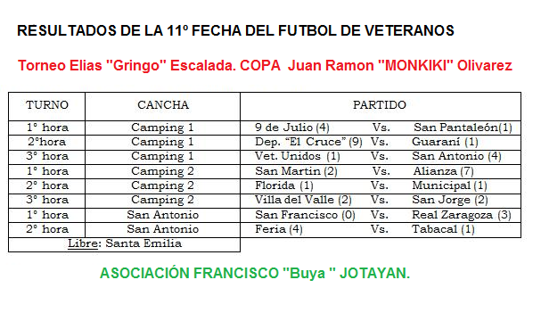 RESULTADOS DEL FÚTBOL DE VETERANOS EN H.YRIGOYEN.